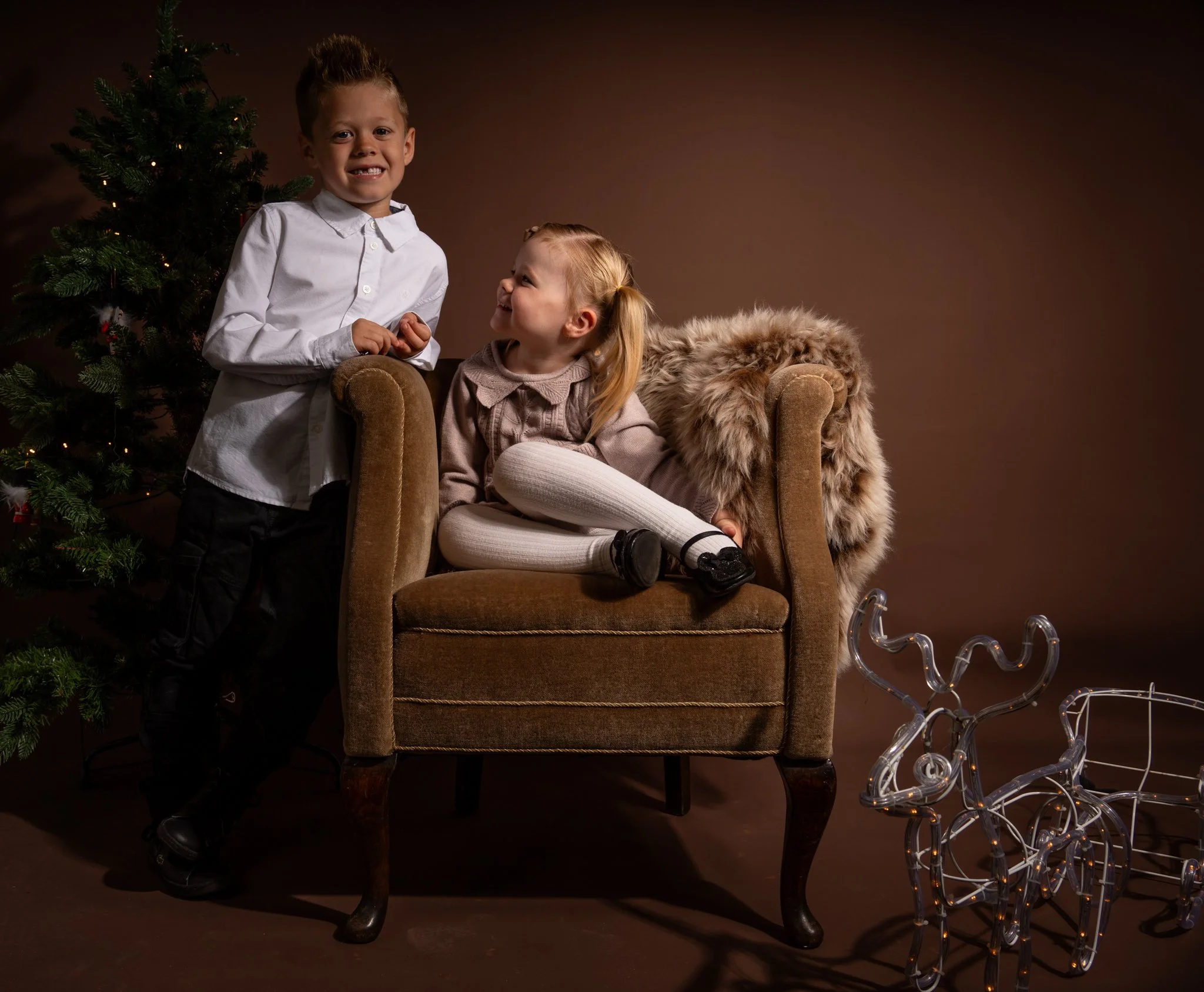 Uanset om du ønsker klassiske juleportrætter i mit hyggelige fotostudie i Hjallerup, eller udendørs billeder med vinterstemning og naturligt lys, får du tidløse og varme billeder, der spreder glæde år efter år.
